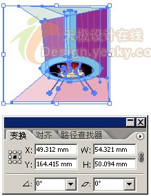 2.選中該對象,并選擇菜單命令“窗口|變換”打開“變換”面板(快捷鍵為shift+f8),如圖2所示。