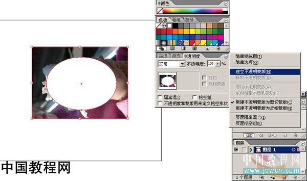 2、選中二者,在透明面板中選建立不透明蒙板,效果如圖