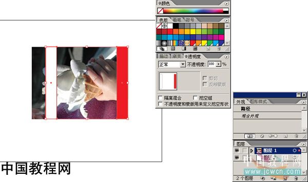 3、在透明面板上,把其中一個(gè)物件透明度降為0%