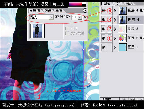 ③④兩層是完全一樣的,使照片采用強光效果。