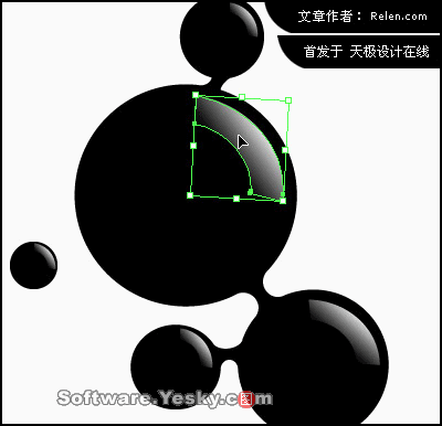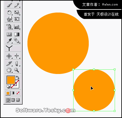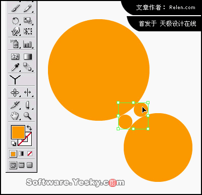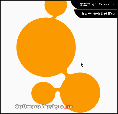 再制作出兩個大小不等的小圓形,調整位置,做切點。