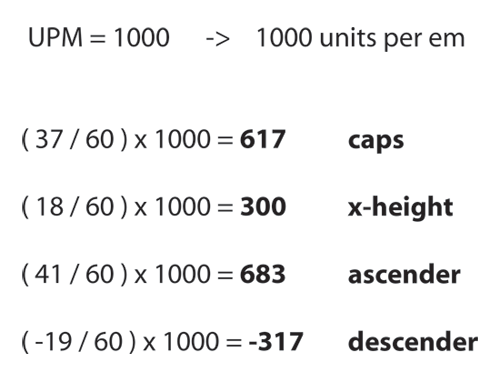 現(xiàn)在,在 fontlab 中標準 upm 尺寸是1000,我們接著計算: