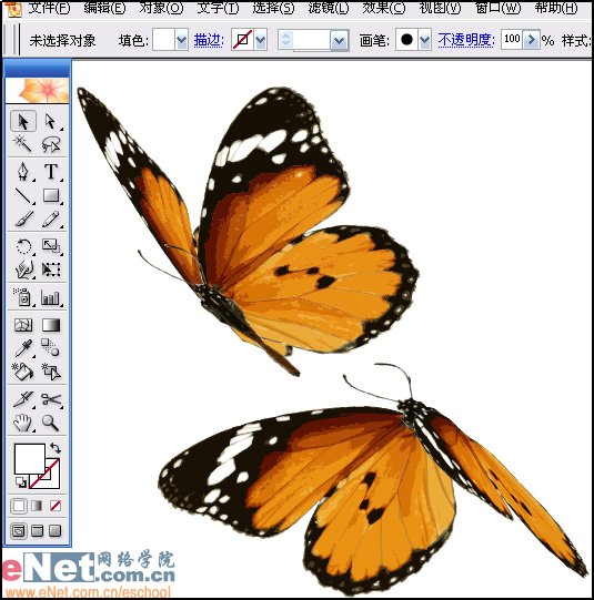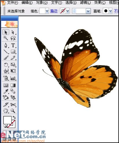 一些較復(fù)雜的矢量圖有時也能用簡單的方法制作出來,以下的實例就是利用一張蝴蝶的平面素材變化出多種蝴蝶動態(tài)效果。通過實例可以了解illustrator的描摹和自由旋轉(zhuǎn)功能。