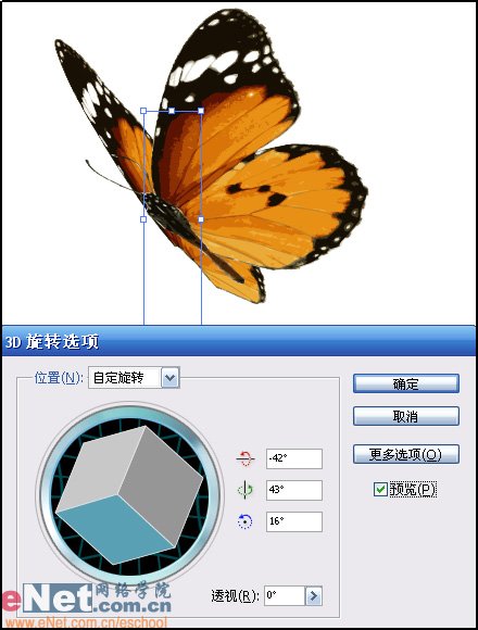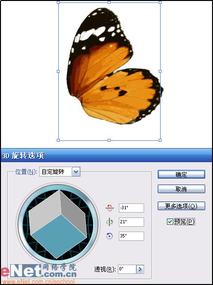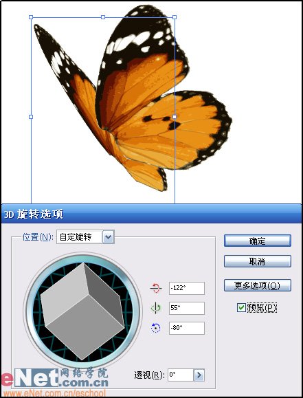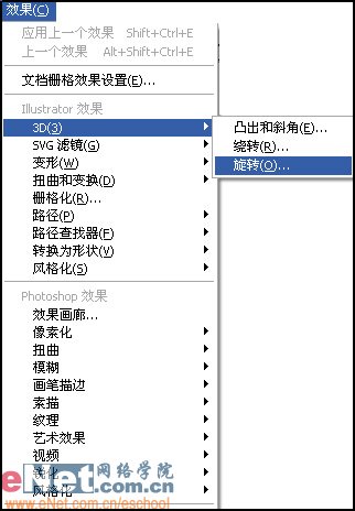 (10)用“選擇工具”點選“右翅”,選擇菜單“效果/3d/旋轉(zhuǎn)”。