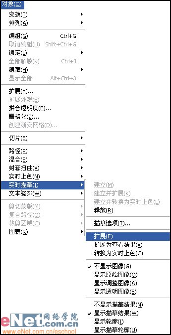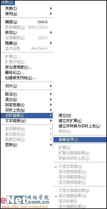 (5)選擇菜單“對象/實時描摹/描摹選項”。