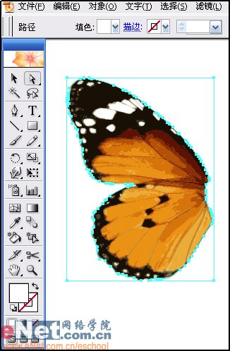 (9)依此類推分別將右翅、身體部分作相同的描摹處理。處理好的矢量圖要進(jìn)行備份,以方便多次使用。