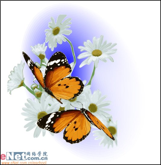 (16)適當(dāng)添加一些背景,一副蝴蝶飛舞的矢量圖就完成了。