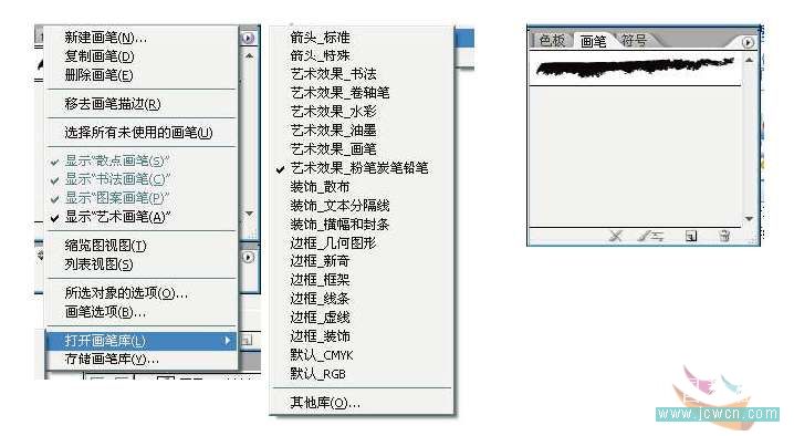 點開三角,在打開畫筆庫中選中藝術效果--粉筆炭筆鉛筆,選中如圖的在畫筆。