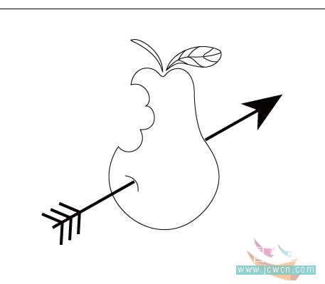 5,實用同樣的方法給箭頭上色。果柄顏色和脈胳的顏色相同,可以選中柄的路徑,用吸管工具吸引脈胳的顏色,將前景色和背景色調換(點單擊填充和描邊上右上方的雙向箭頭,或shift+x)