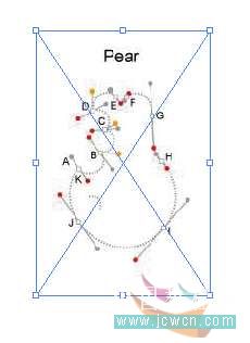 說明一下分解圖。灰色和紅色的點,是鋼筆來出一個節點拉出的二根原始手柄,黃色的點的手柄,是對灰色手柄進行調整后的位置。鋼筆工具要配合alt工具一起用,手柄的長度和方向對路徑產生直接影響,體會這種變化 ,掌握鋼筆工具的使用。
