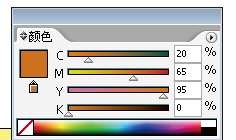2、雙擊上圖中白色色標,在顏色面板中更改顏色模式為cmyk。