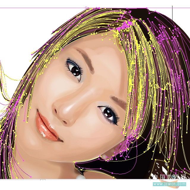 32接下來是苦活了,頭發絲需要一根一根的加上去,用鋼筆點選邊框上色