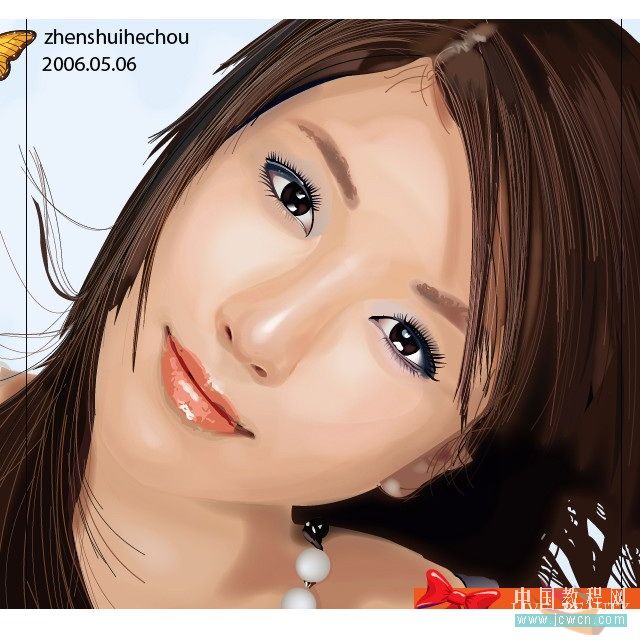 31開始描繪裝飾品,這里的珍珠可以用圓形工具拉,大體明暗加一下有立體感就行了, 不必太細致