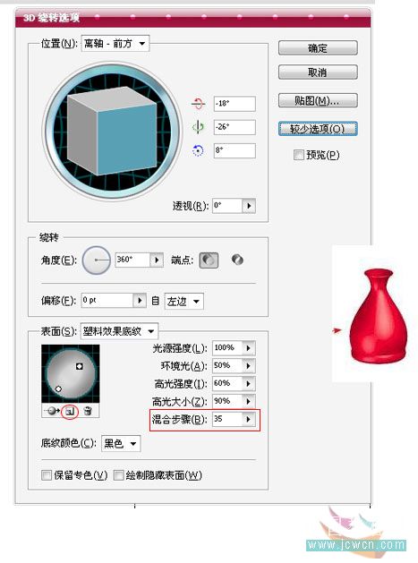 點擊光源對話框新建按鈕,新建一個光源,并如圖中所示進行調整。混合步驟改為35。其它的默認。