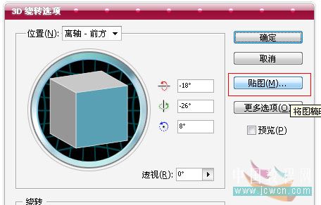 當3d繞轉對話框在頁面的最上方顯示時,點擊“貼圖”按鈕