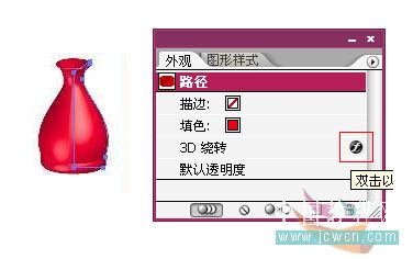 (1) 保持花瓶路徑被選中 ,打開外觀面板“窗口”-“外觀”。雙擊3d效果,進行3d繞轉對話框。