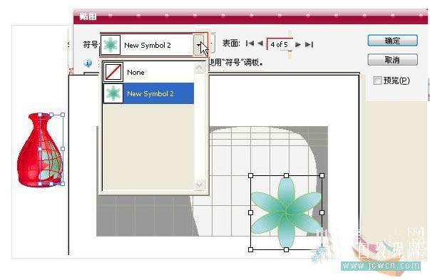 把“預覽”前面的勾打上,可以直接在窗口中看到的效果。有此對話框的上有二個列表,符號和表面。點擊表面選項后面的黑色箭頭可以選擇要進行貼圖的位置。