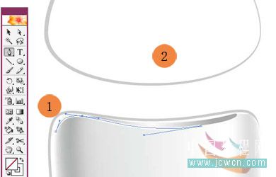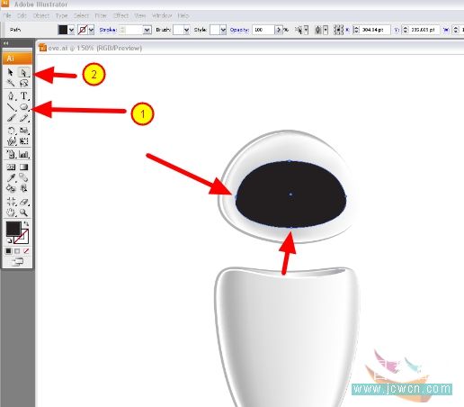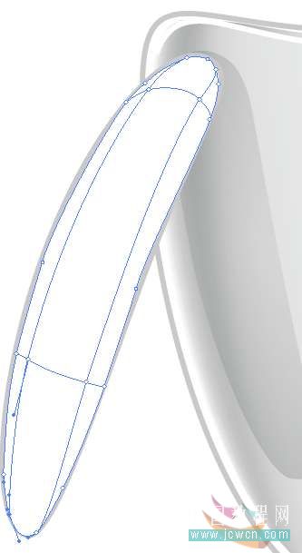 9、使用橢圓工具來出左手,用直接選擇工具進行調整,設置填充為白色,描邊為30%的灰度。如下圖: