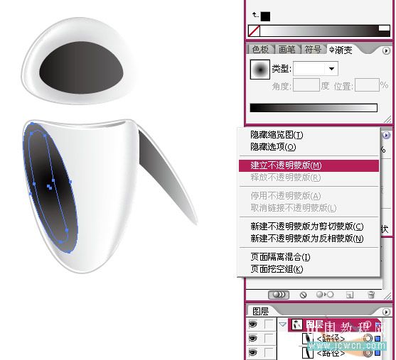 7、打開不透明度面板,點擊右上方的三角,選擇“建立不透明度蒙版”。