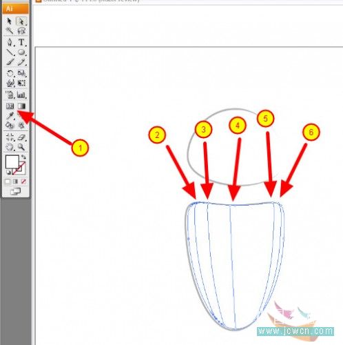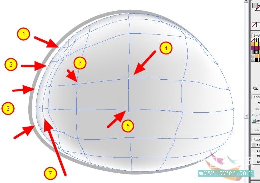 可以先畫一個橢圓,設置二根基本網格線 ,然后對這個添加了網格的對象拖成左手的形狀,再添加細節網格線。這樣,你會發現網格線變的很好控制。