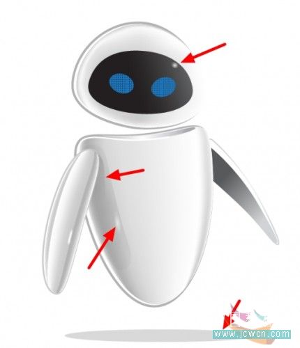 1、在機器上的頭部和身體部位,各畫一個白色小圓點,無描邊。