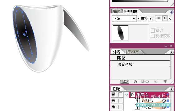 13、選用橢圓工具,繪制黑色橢圓,描邊無。使用直接選擇工具進行調整。再填充100-65%的漸變。如圖: