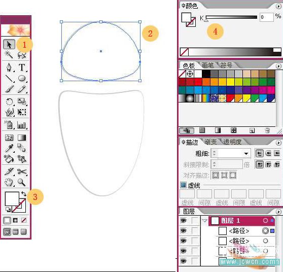 將填充色設為白色,描邊色設為30%的灰度,描邊為2pt。如果你的顏色模式為cmyk,可以在顏色面板的右上角點開這個三角按鈕,更改顏色模式。