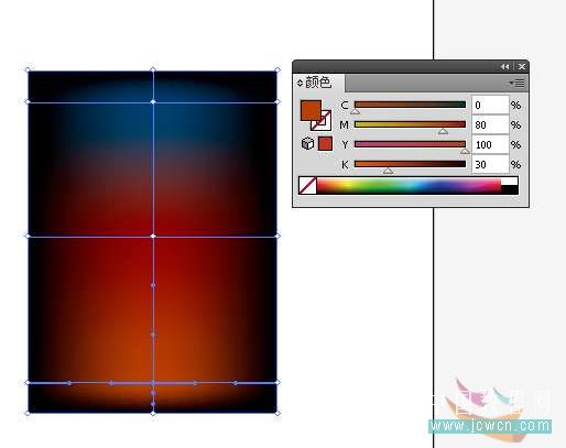 4,使用網格工具,在下方點擊,并更改顏色為:c :0;m:80; y:100; k:30.