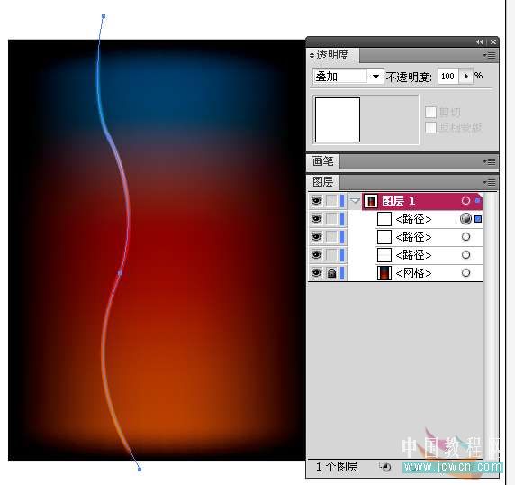 12,保持路徑選中狀態,打開透明度面板,將模式改為疊加。
