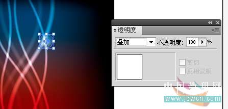 18,將混合后的圓對象,移動線條交叉處,在透明度面板上更改為疊加模式。