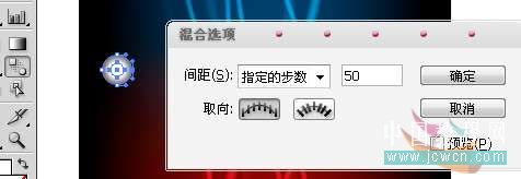17,使用混合工具,在二個圓上各自點擊,設置步數50。