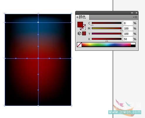 3,使用同樣的網格工具,在中間處點擊,并更改顏色為:c :0;m:100; y:100; k:50.