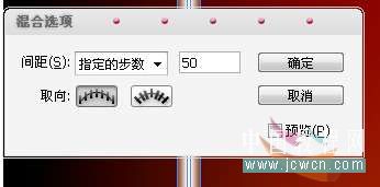 7,使用混合工具 ,在二個矩形上各點擊一次。在彈出的混合選項對話框中,設置指定步數為50。