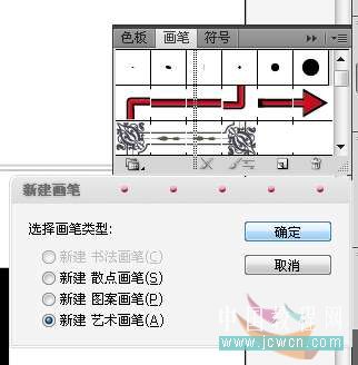 8,建立好混合之后,使用選擇工具拖動矩形對象至畫筆面板 ,在彈出的 新建畫筆對話框中,選擇“新建藝術畫筆”。