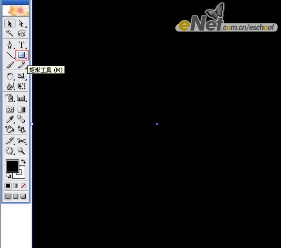 (3)選擇工具欄中的“矩形工具”在繪圖窗口繪制一大小適中的矩形并在矩形中填入黑色,此矩形將作為爆炸效果的黑色背景。