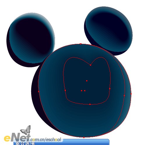 (32)面部的繪制方法同前,這里就不多說了。嘴部繪制后就不用進行混合了,填入較暗的紅色即可,這樣更加能夠體現米老鼠卡通形象的夸張可愛的表情。