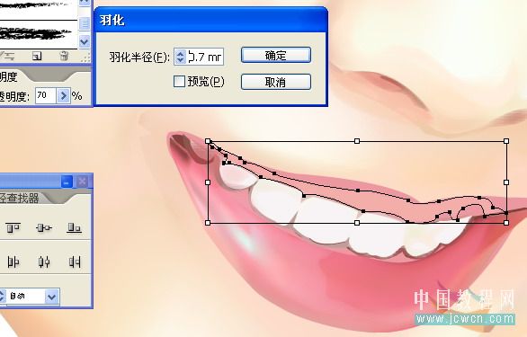 72為上嘴唇加些光影色,羽化效果為0.7。