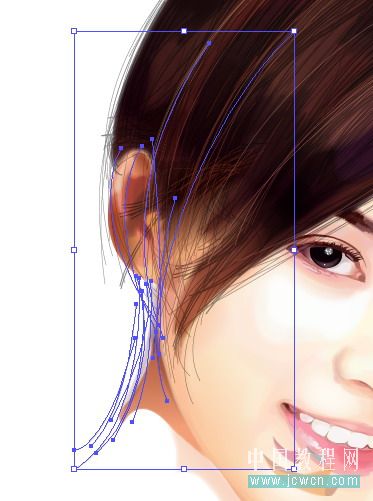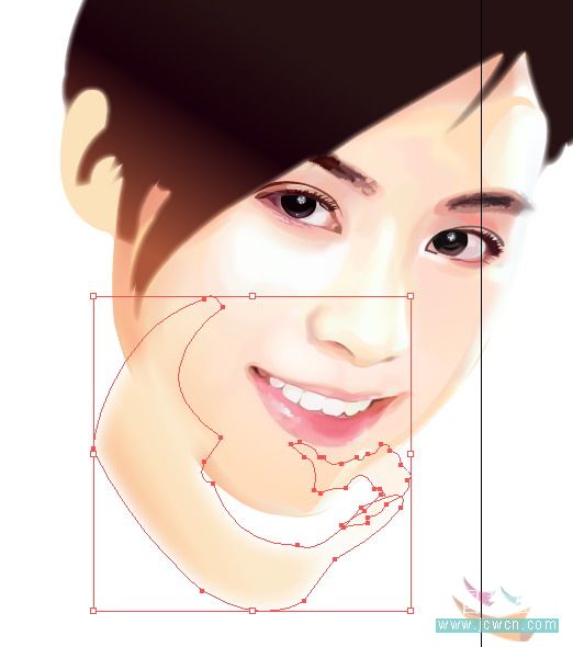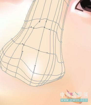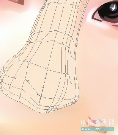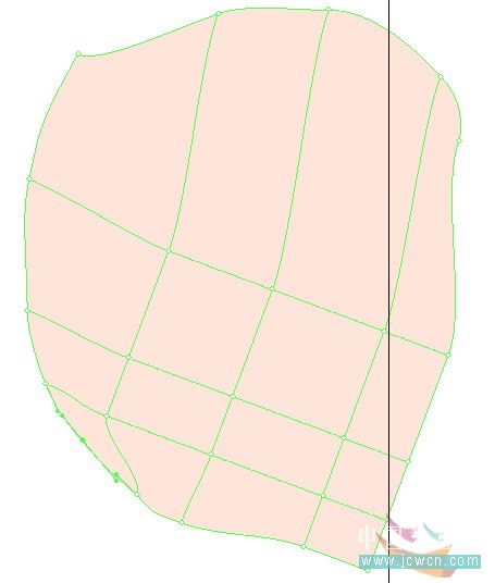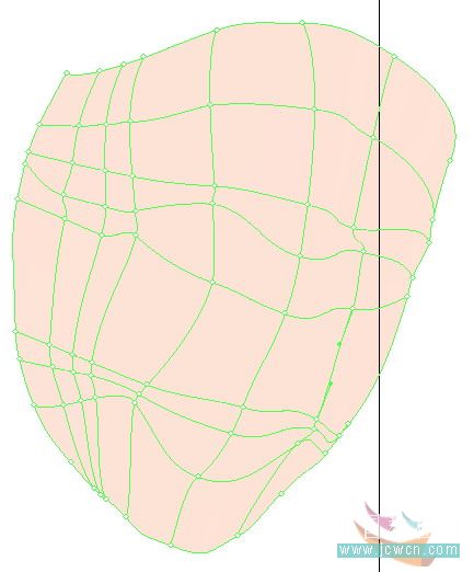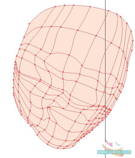 8運用“直接選擇工具”慢慢改變網格的造型,注意主線的位置要在整個臉的中間,不然以后加網格線會線條亂竄。