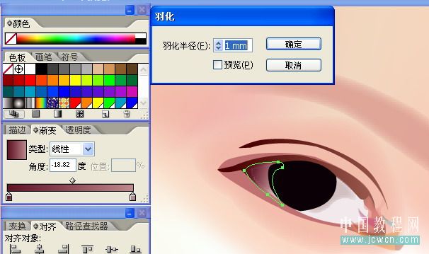 90刻畫耳朵的結構,這里用漸變突出耳朵的構造,羽化為1.8。