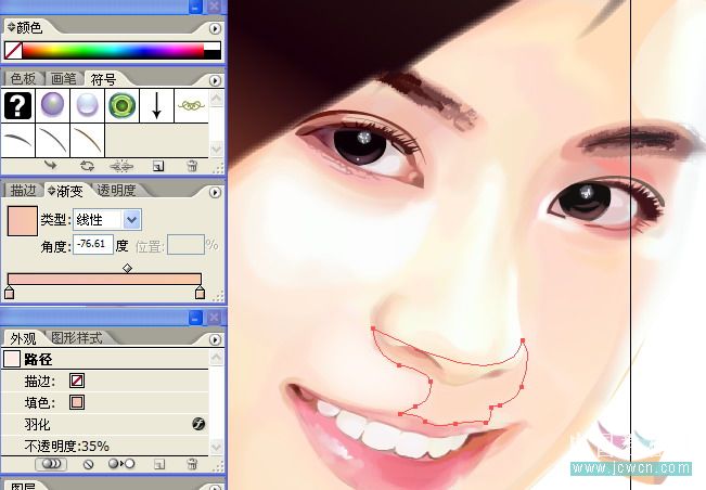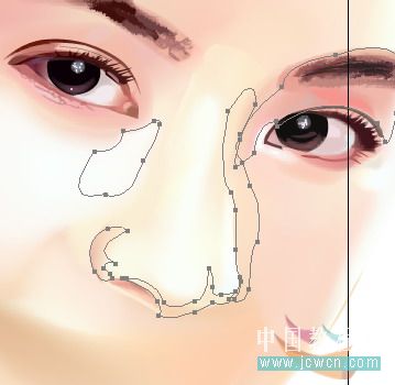 51用“直接選擇工具”盡心變形,慢慢變換到鼻子的造型。