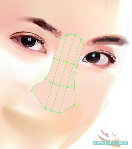 好了,到這里開始我們要繪制鼻子了,這次還是要講到本篇的重點——網格,大家會發現運用網格的范圍其實可以很廣泛,它可以大大增強繪畫的效率。好啦,我們開始吧。