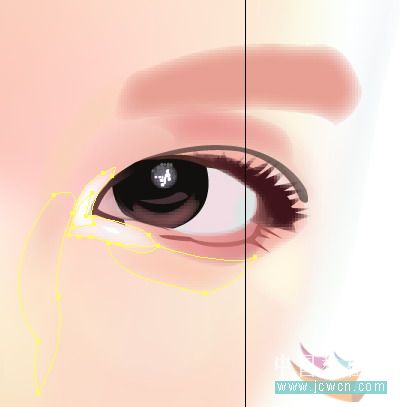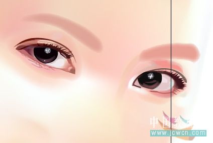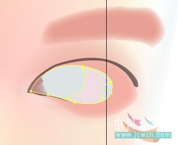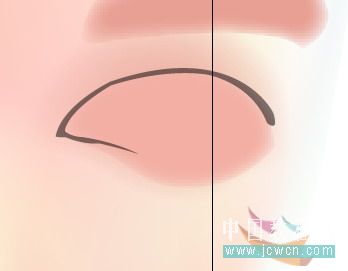 24好啦,開始繪畫心靈之窗啦,先把右眼框定位啊,眼白不要用純白,這里人物都是偏紅潤的色彩,所以稍微偏粉紅。