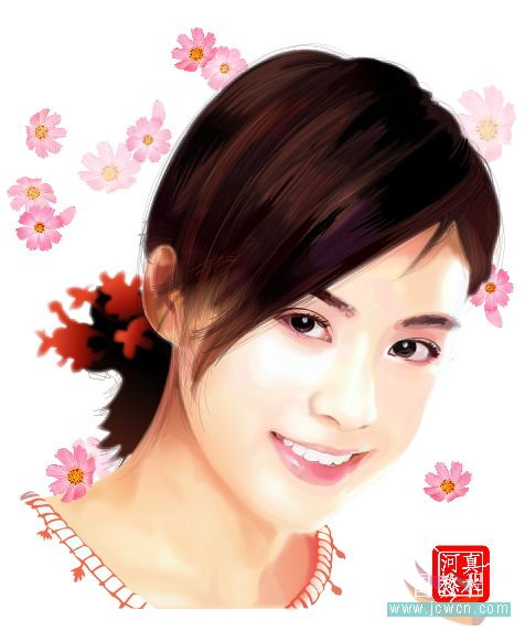 好啦,到這里整個五官篇就算是完成了。這一章主要是教大家如何運用網格來繪制人物,可以是大面積的人物,也可以是細小的嘴唇,總之它的作用方便于我們不停的添加色塊,而只需要做些小量的修補工作就行了,實在是很方便的工具啊。