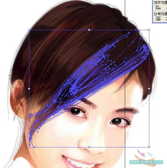 100運用復制很快就能達到發絲如云的效果,只是最后可以單獨挑幾根發絲做下變色處理,這樣可以使頭發很有層次感。