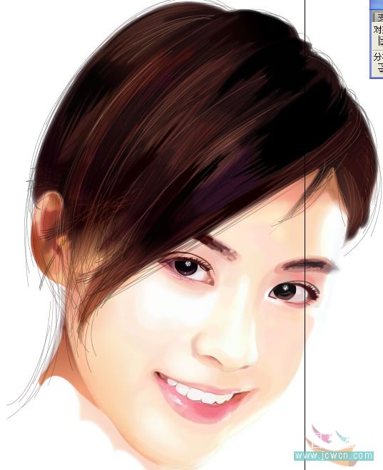 99需要注意的是發絲的走向,還有細小的分叉處理,這里大家可以觀察下我的發絲處理。