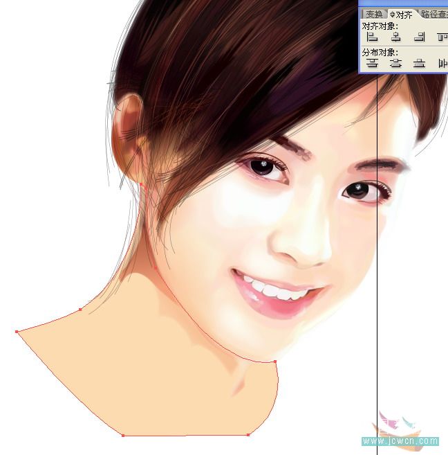 好了,到這里為止頭發大致繪制完畢了,接下來我們描繪脖子和衣服。