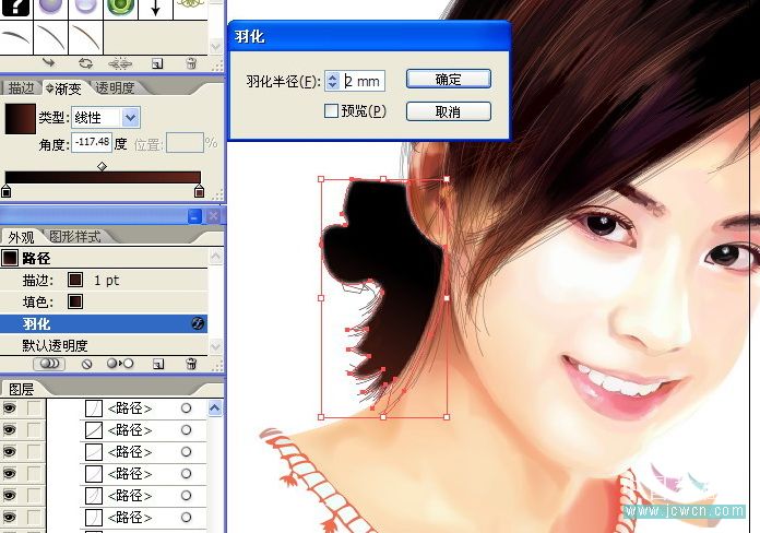115加上些頭發的裝飾,運用下漸變加羽化系數2。