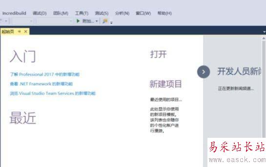 1、首先不用我多說,肯定是先打開電腦,運行VS2017軟件,進入起始界面,如下圖所示。