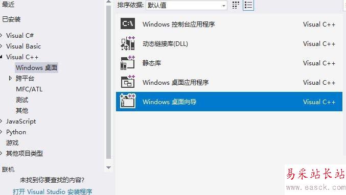 4、然后中間會出現一系列選擇,這里因為要建立空項目,所以選擇windows桌面向導,再點擊確定,或者雙擊它。
