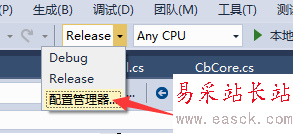 1、就是在運行按鈕右側,的Debug/Release下拉列表框中,點擊配置管理器。